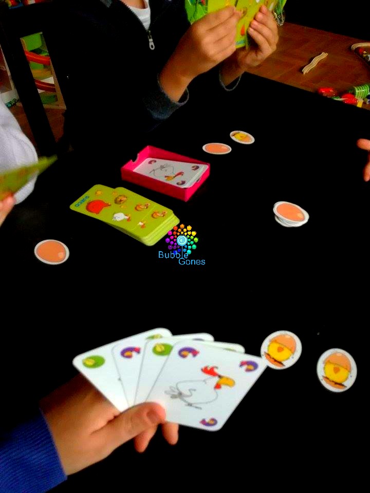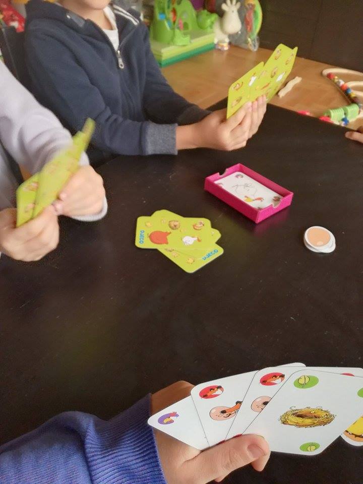 Le principe est très facile, j’ai joué avec deux enfants de 4,5 et 5 ans Manon et Sacha. Manon aime bien ce jeu par contre elle aime moins le fait qu’il y est des perdants et des gagnants (elle préfère les jeux coopératifs), Sacha a compris direct les règles et a adhéré quant à Chloé elle nous a demandé d’y jouer quasiment tous les jours de cet été.