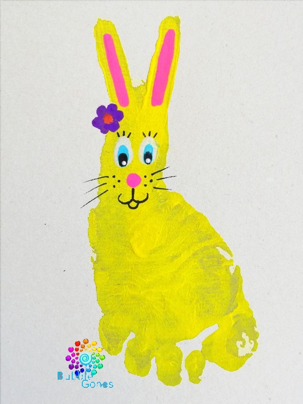 Oups j’ai oublié de vous montrer l’empreinte du mois ! Bon pour ce mois d’avril c’était facile, vu que c’est Pâques, j’ai emprunté le pied de Jeanne et Hugo pour réaliser un joli lapin tout à fait craquant !!!
