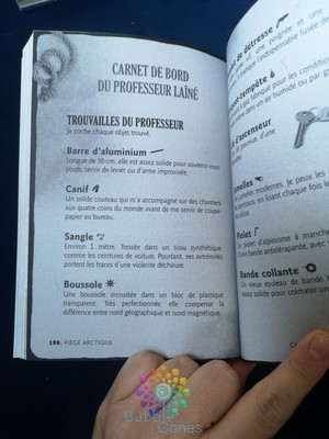 il est sur le même principe que pour la collection 8-12 ans : on incarne un héros qui vit une aventure. On retrouve l’inventaire sous le nom de carnet de bord, ainsi que les combinaisons, mais aussi des conservations. Cela correspond à des discussions que notre héros va pouvoir avoir avec des personnages. Heureusement on retrouve les indices et les solutions.