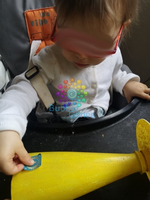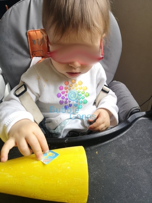 Dans mon “petit” stock de gommettes, j’ai des gommettes qui correspondaient tout à fait. Les filles les ont choisis, je les ai décollés, puis elles les ont mises sur la coupe (un travail qui demande de l’attention et de la patience, car ces gommettes sotn coquines, elles se collent aux doigts ^_^).