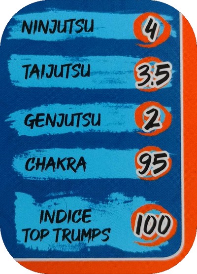 Les dessins sont fidèles à l’anime. Par contre ne connaissant absolument l’univers, on est un peu largué sur les caractéristiques : Ninjutsu, taijutsu, genjutsu, chakra… Alors si comme moi vous êtes largués voici une petite explication :