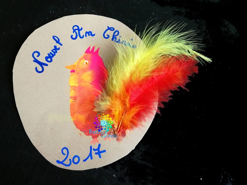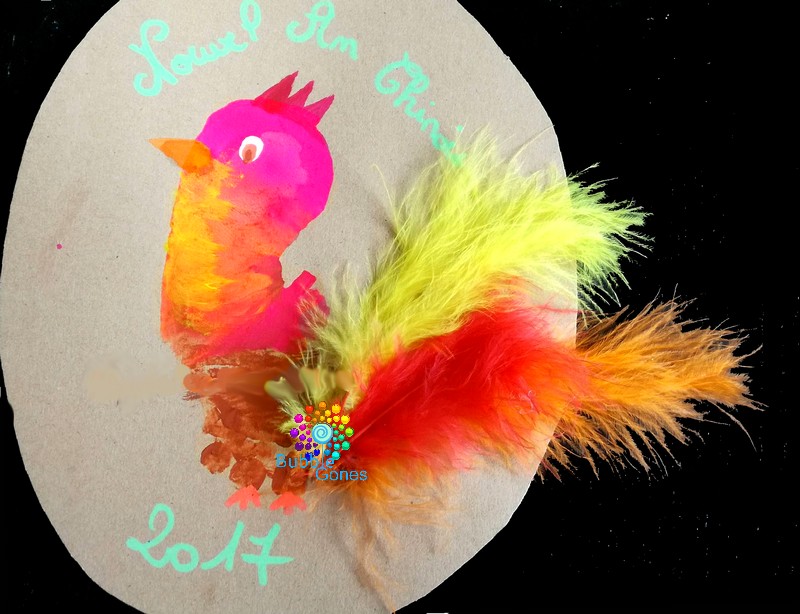 Cette année, on fête le nouvel an chinois. Pour 2017, c’est le coq qui est à l’honneur. Du coup, j’emprunte le peton des mes loulous. Ils adorent ça, ils me regardent toujours avec un air intrigué. Mais Hugo devient chatouilleux des pieds, il se tortille et prends des fou-rires.