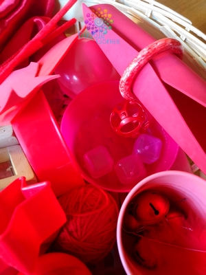Les objets choisis tournent autour d’un même thème : couleur (thème blanc et rouge), forêt, océan, cuisine… (découvrez celui que j’ai créé sur le thème de la cuisine par ICI). Il est important de choisir aussi des éléments qui ont différentes textures, formes afin de susciter la curiosité de l’enfant.
