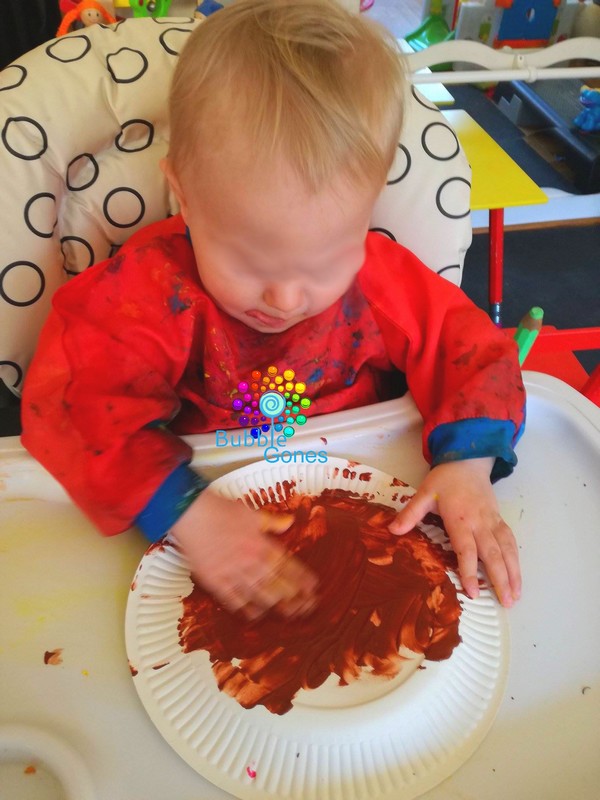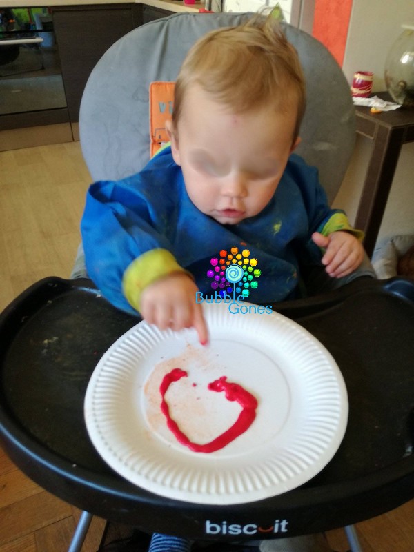Je propose à Hugo et Jeanne de choisir la couleur de leur panier. Après avoir hésité, ils ont choisi le marron et le rouge. Ils ont peint une assiette en carton des deux côtés :