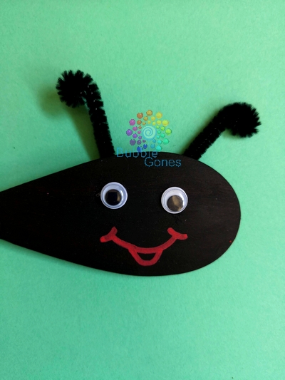 J’ai coupé les cure pipes et j’ai roulé le bout sur lui même. J’ai collé les yeux mobiles et le cure pipe pour les antennes. J’ai rajouté un petit sourire, pour qu’ils aient un air mignon :