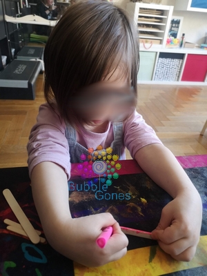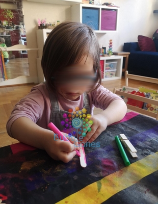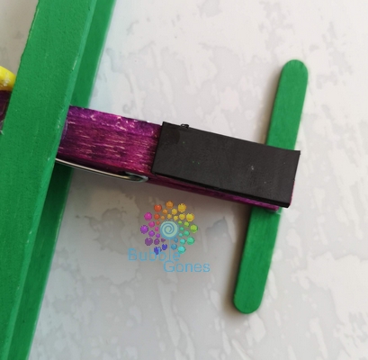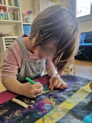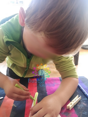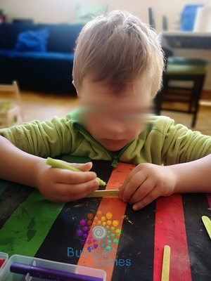 Les enfants se sont bien appliqués à colorer les bâtonnets et la pince en bois avec les feutres. C’est un excellent exercice de motricité et de patience, car il faut bien faire tous les côtés.