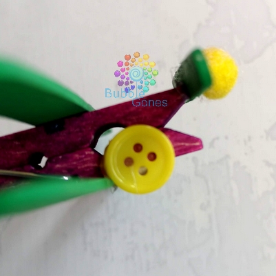 Une fois les éléments tout colorés, les loulous ont choisi leur pompon et les roues en boutons. Une fois que j’ai tout, je monte l’avion avec le pistolet à colle : les ailes, l’hélice, les roues, ainsi que l’aimant à l’arrière de l’avion. Puis je dessine les sigles sur les ailes.