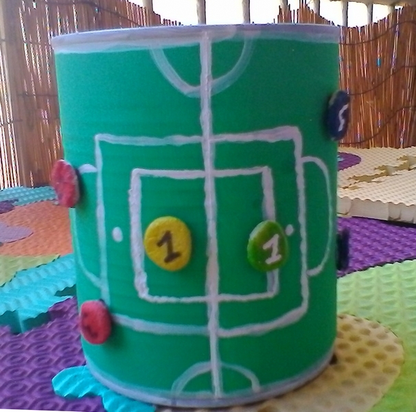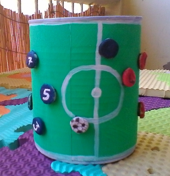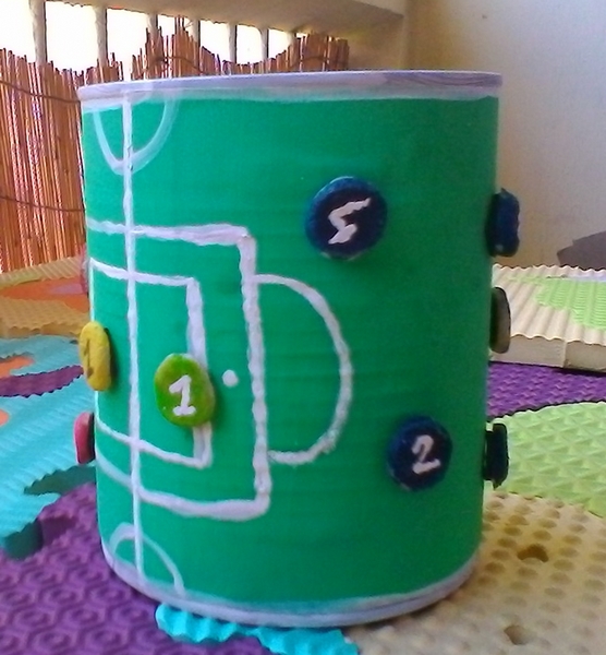 Voilà notre pot à crayon, spécial fan de foot pour le travail.