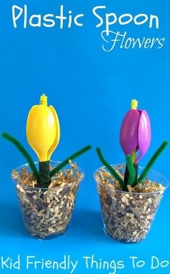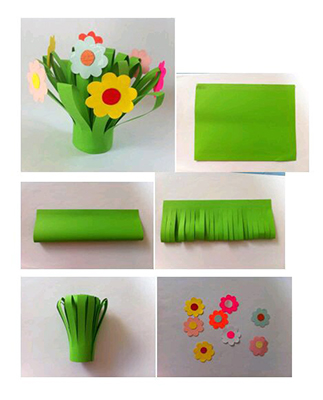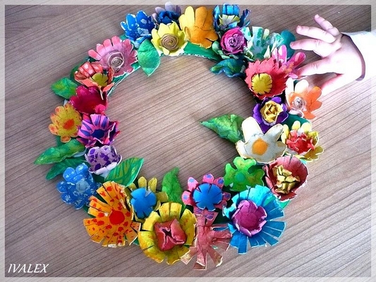 Peinture, bouchon, boîte d’oeuf, couvert en plastique, capsule de bière, fil de laine, coton tige, cupecake, coton, papier crépon, rouleau wc, bouteille en plastique … Découvrez comment transformer toutes ces matières en jolies fleurs.