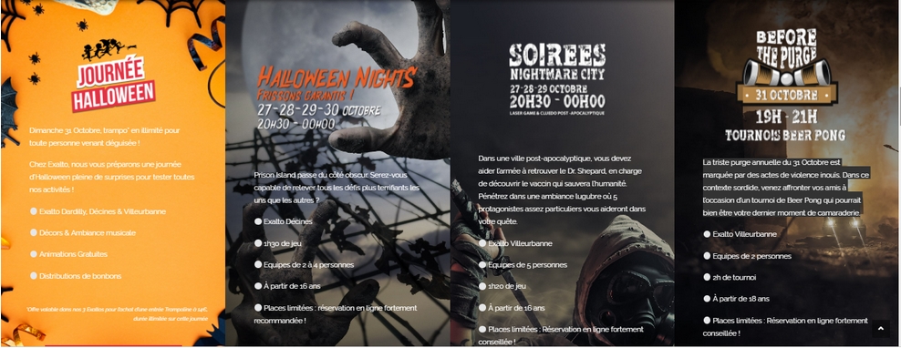 - A Décines découvrez les Halloween Nights lors des soirées du 27, 28, 29 et 30 octobre : Prison Island passe du côté obscur. Serez-vous capable de relever tous les défis plus terrifiants les uns que les autres ?