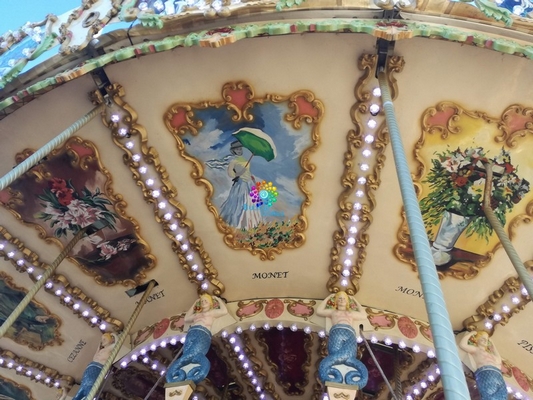 Une fois le ventre plein, vous pourrez aller faire un tour sur le superbe carrousel surplombant le bassin, en plus même les adultes ont le droit d’y monter !