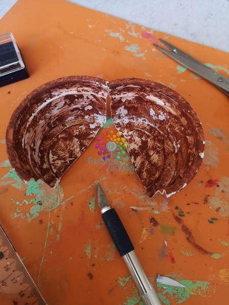 La gouache a un effet mat du coup je les ai vernis, vous pouvez voir sur la photo suivante l’effet satinée que donne le vernis colle UHU :