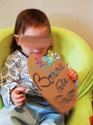 En réalité : une catastrophe ^_^ LOL les filles ont pas été super coopératives ! Entre tenir le carton dans le bon sens et pas à l’envers, rester en place, me regarder et me faire un sourire : elles avaient envie d’embêter Nanny ! Car pour obtenir des magnifiques poses quand elles jouent j’ai aucun soucis !!! Bref des vraies chipies ces deux là !!!