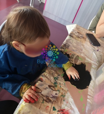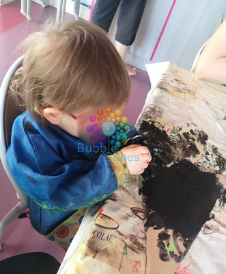 Elle a ensuite peint la feuille cartonné avec un vert un peu plus foncé que la carapace (je peux vous dire qu’elle a pris beaucoup de plaisir à peindre, elle a continué sur toute la table après ^_^)