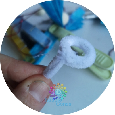 J’ai créé l’auréole avec le fil chenille que j’ai collé dans la perle.