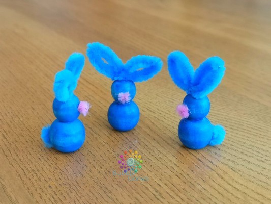 J’adore les activités autour de Pâques, mais il me manque de la décoration en bois. Je n’ai pas trouvé les lapins en bois à action, alors j’ai décidé de les faire moi même en customisant des perles en bois.