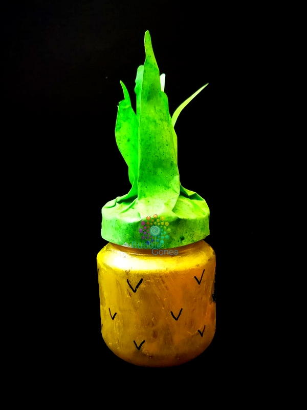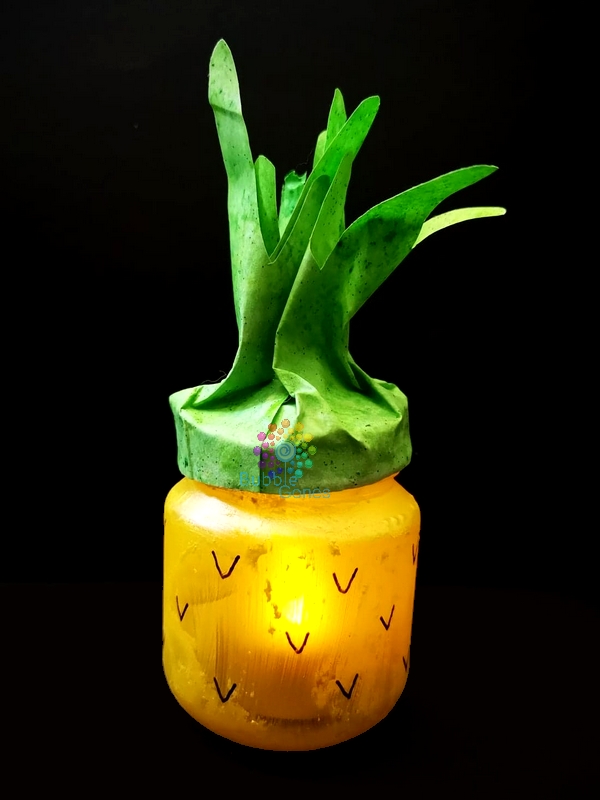 J’ai dessiné des petits V sur le pot en verre pour faire les nervures de la peau de l’ananas.