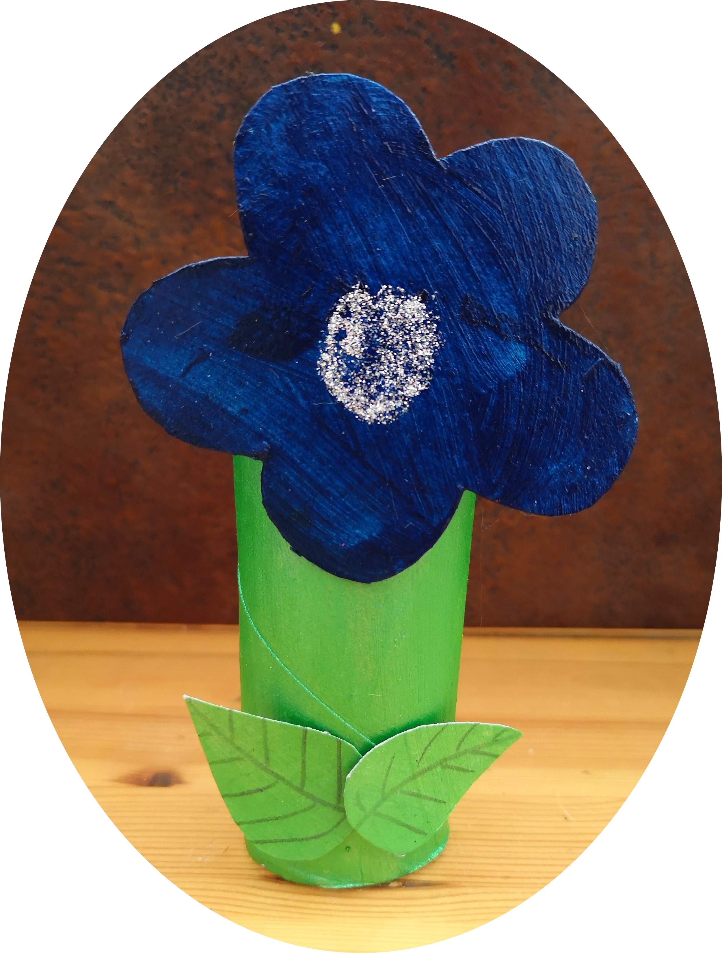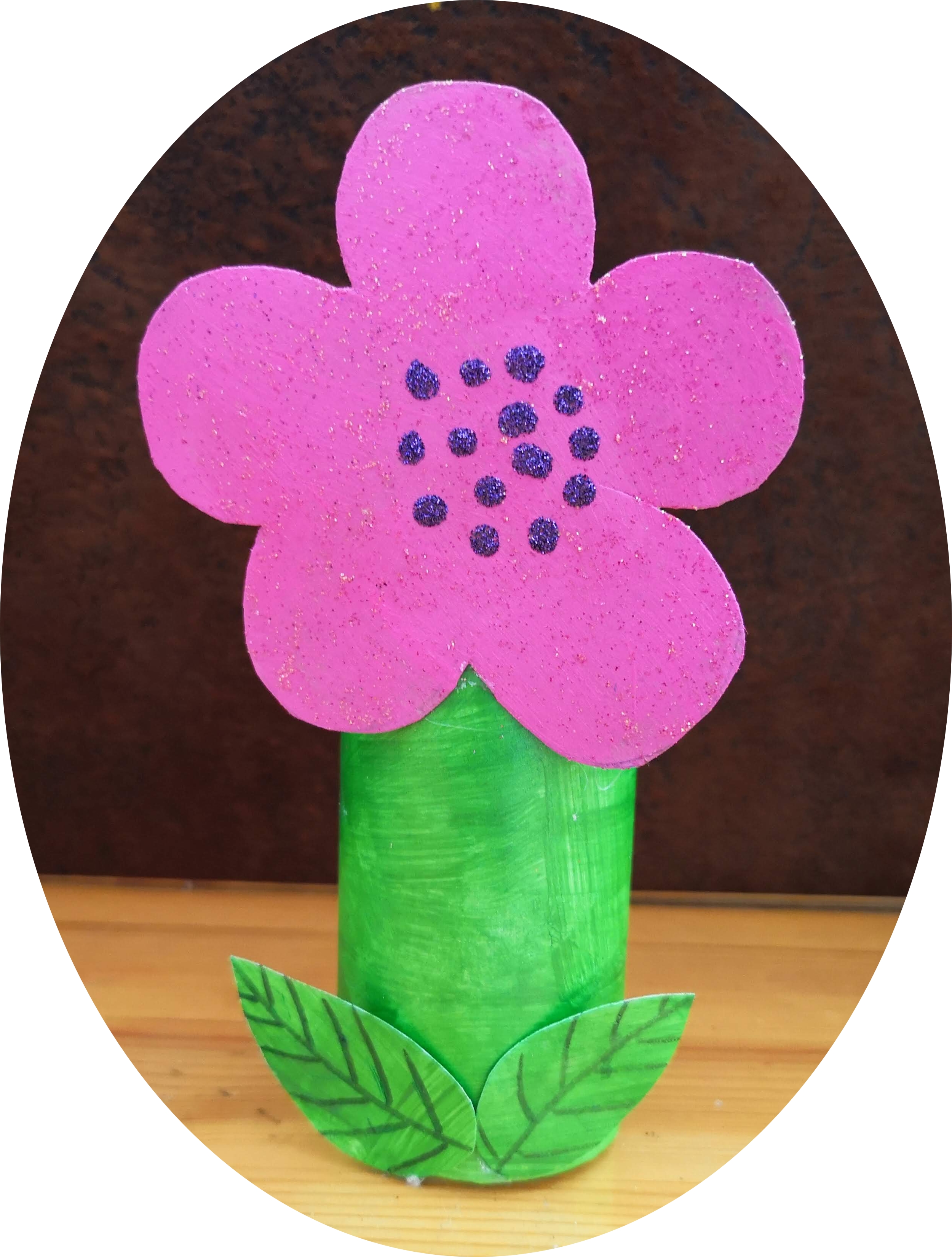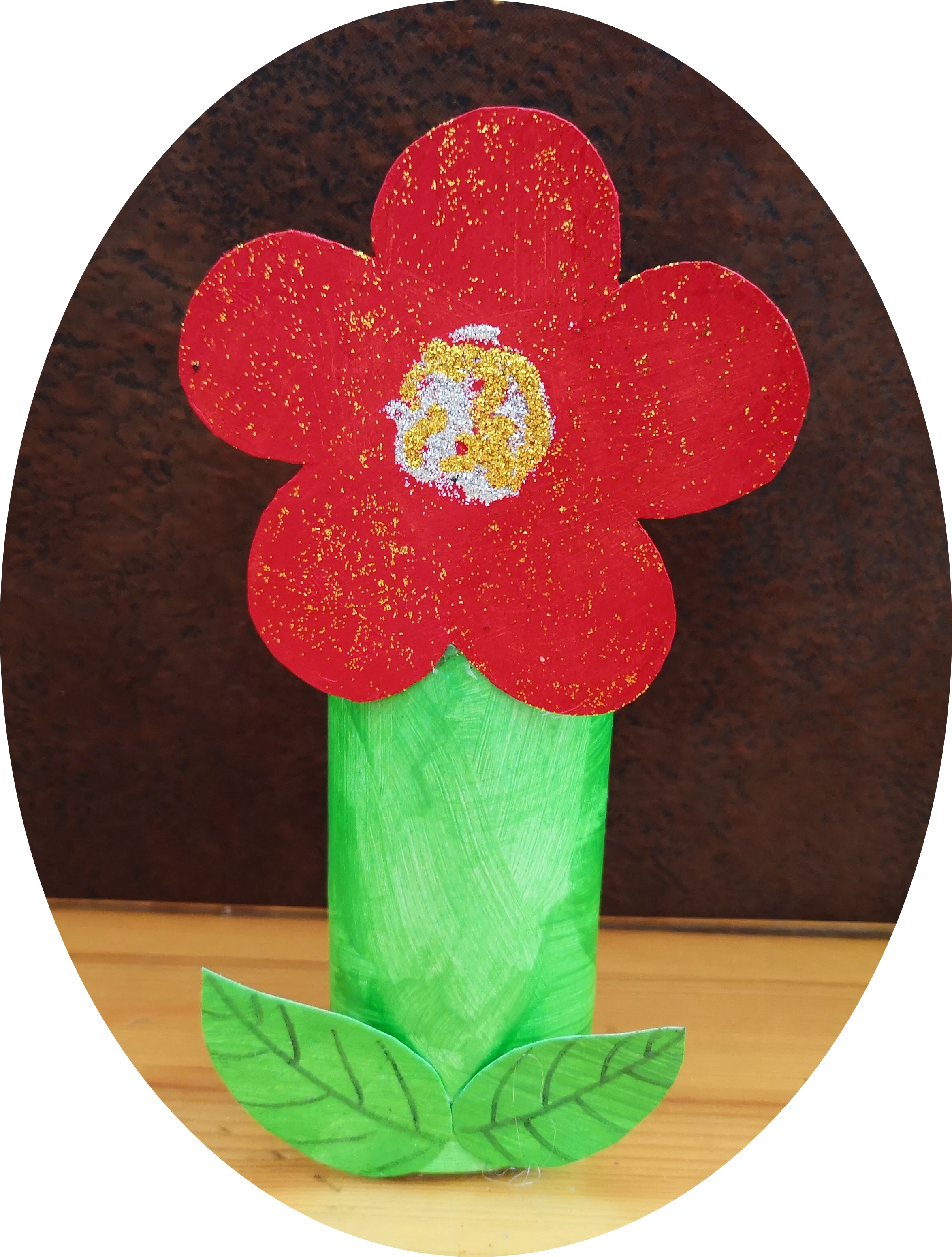 On a mis des paillettes au coeur de la fleur. J’ai collé la fleur et les feuilles sur la tige (le rouleau WC) : elles ne sont pas belles nos fleurs ? Vous préférez laquelle ?