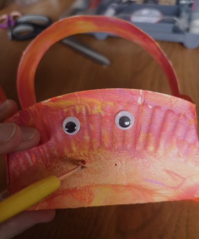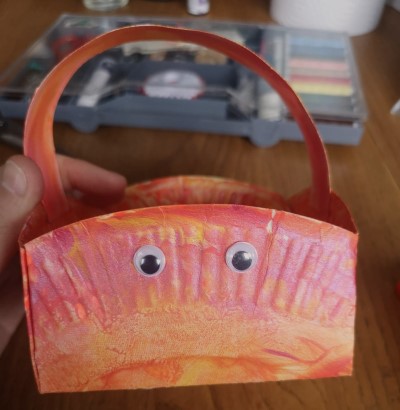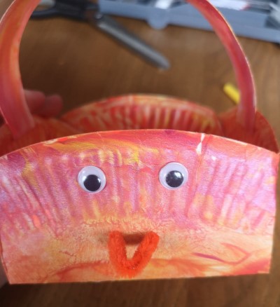Enfin je rajoute l’anse du panier, et je customise ma poule :
