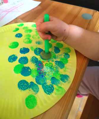 Les deux filles adorent étaler la peinture dedans, j’ai juste besoin de leur montrer les endroits blancs pour qu’elles déposent de la peinture dessus.