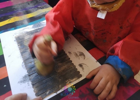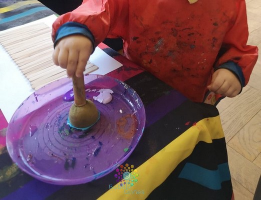 J’ai alors déposé la peinture sur une assiette avec un tampon.