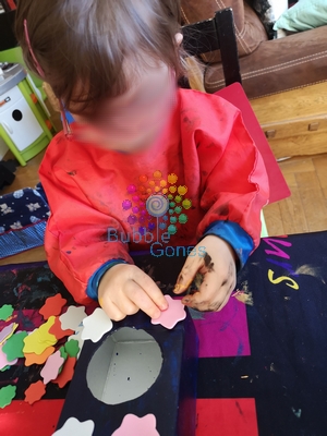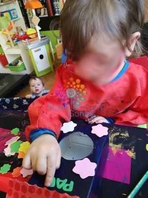 - gommettes : les miennes ne sont pas autocollantes du coup j’utilise des carrés de mousse autocollante