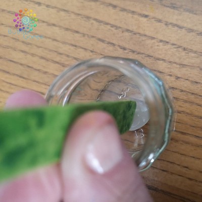 Puis j’ai mis de la colle chaude au fond du mini pot de confiture et j’ai maintenu la tige dans la colle le temps que celle-ci prenne.