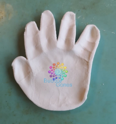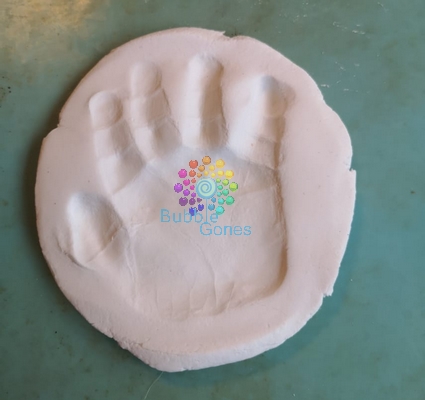 J’ai pris l’empreinte de mains des loulous en appuyant légèrement.