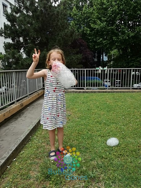 Bon au moins avec le vent c’est que les bulles volaient haut !!! Par contre ce coquin de vent a renversé la barquette ! Du coup la prochaine fois je mettrais dans une assiette !